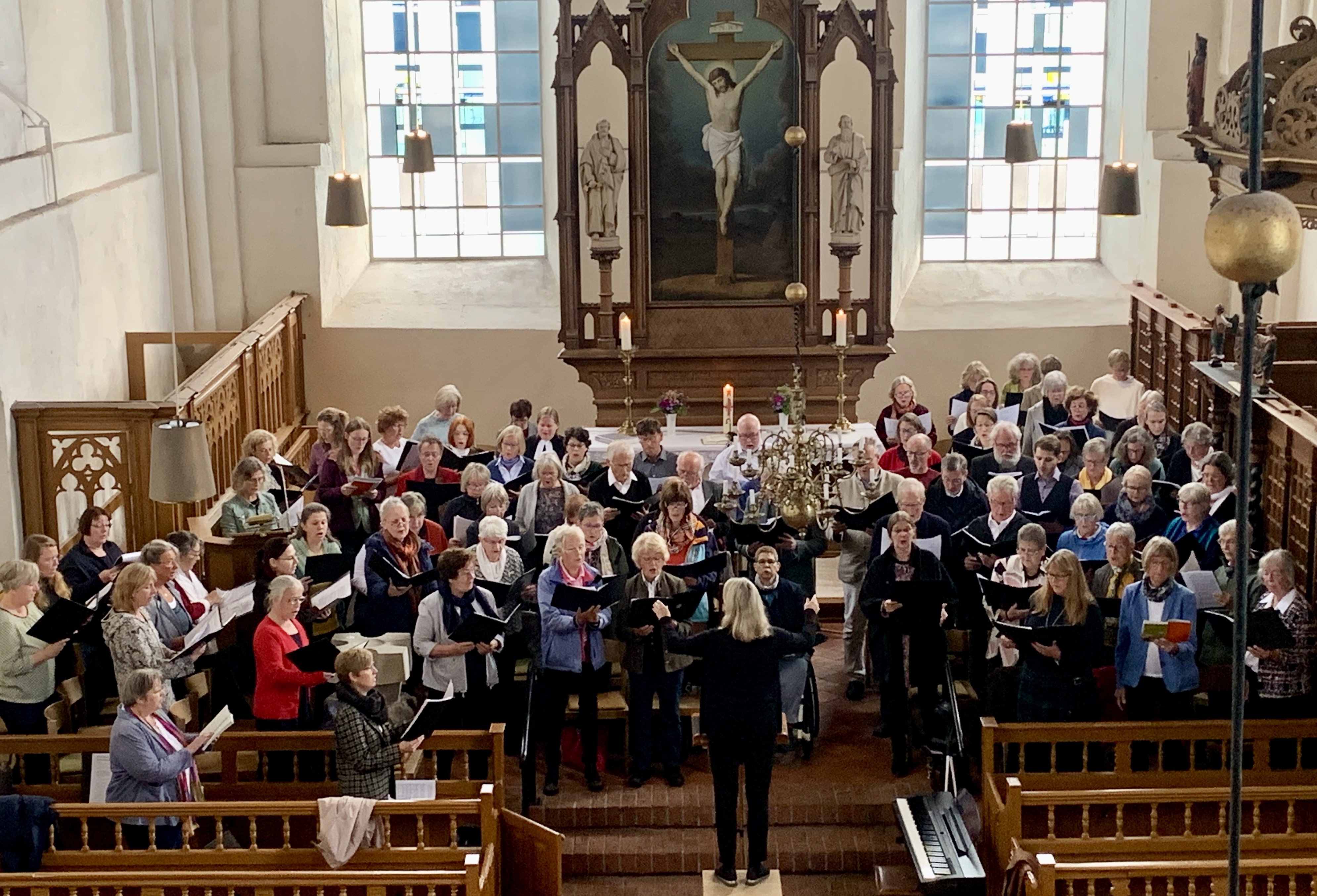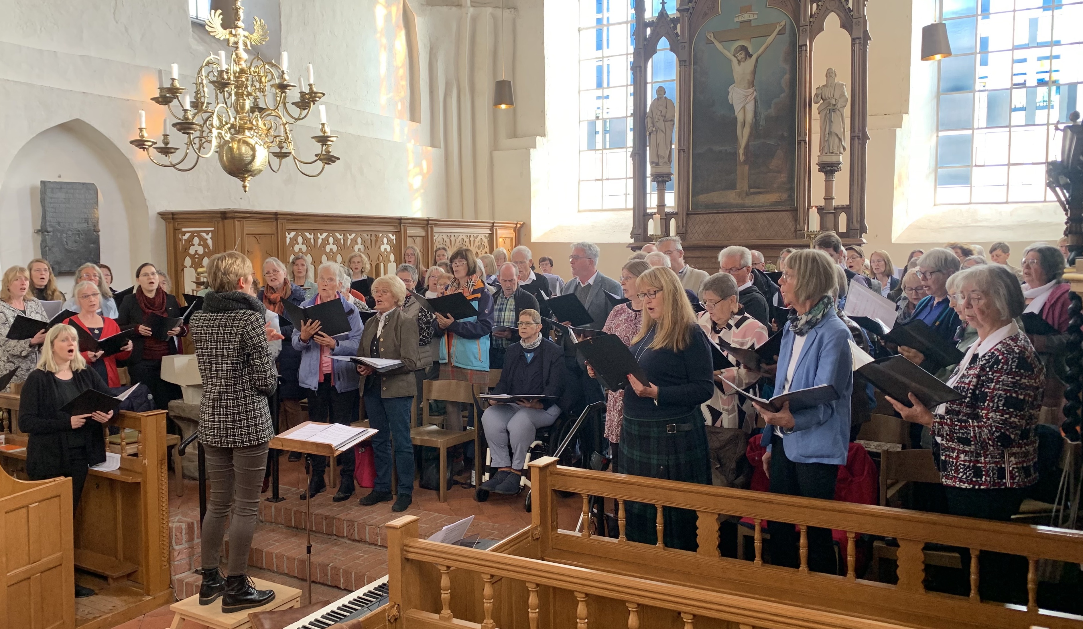 Am letzten Sonntag, 29.09., trafen sich etwa 90 Sängerinnen und Sänger aus dem ev.-luth. Kirchenkreis Norden in der Warnfriedkirche in Osteel zum gemeinsamen Singgottesdienst unter der Leitung von Kreiskantor Thiemo Janssen.
